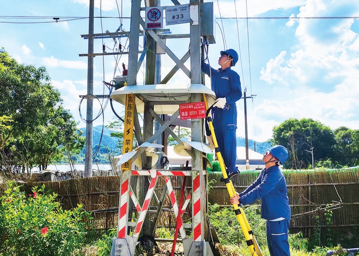 南方電網廣東惠州惠陽供電局的青年突擊隊隊員細致巡檢電網設備。 惠州日報記者駱國紅 通訊員陳凌 曾韻詩 攝