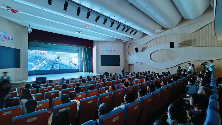 吹著空調、坐著軟包座椅,看著優(yōu)質片子。當晚,縣城群眾珍姐約上三五知己一起前往小劇場欣賞公益電影。作為“70后”,珍姐和她的伙伴們在小時候也曾跟著大人夜里趕路“追”農村公益電影。這次在小劇場里“追劇”,她仿佛又回到了童年結伴看農村電影的年代,但又不一樣,這回有點在電影院觀影的感覺。她說:“一樣是那些小伙伴,一樣熱鬧,就是環(huán)境更好了。”