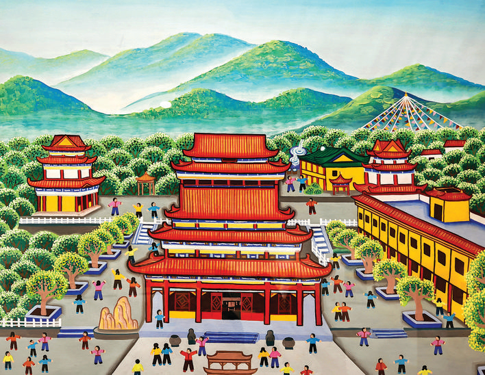 根植于嶺南文化、廣府文化、客家文化與瑤族文化土壤的龍門農民畫,吸收了民間刺繡、木雕、剪紙的藝術精髓,融合水墨、水彩、油畫的表現形式,以濃墨重彩渲染當地群眾豐富多彩的勞動和生活,在藝術領域獨樹一幟。