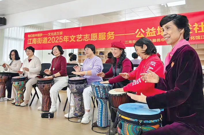 此外,老年社會組織孵化工程讓老年人從社區治理的“旁觀者”變成“參與者”。依托街道社區社會組織聯合會,江南街道培育25個老年人社會組織,涵蓋治理、環保、文體等領域,真正實現“退休不褪色,余熱映初心”。“自從加入銀齡志愿者團隊,每天有不一樣的事情等著我去做。”80歲的志愿者譚寶琴自從加入志愿服務隊,經常參加慰問困難群體、文藝演出、愛國衛生運動等活動。“能為社區做點事,我感覺很充實。”譚寶琴說。