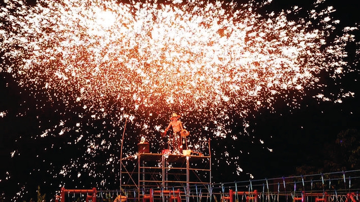 梁化鎮小禾洞見生態園非遺打鐵花表演。 通訊員戴相國 攝