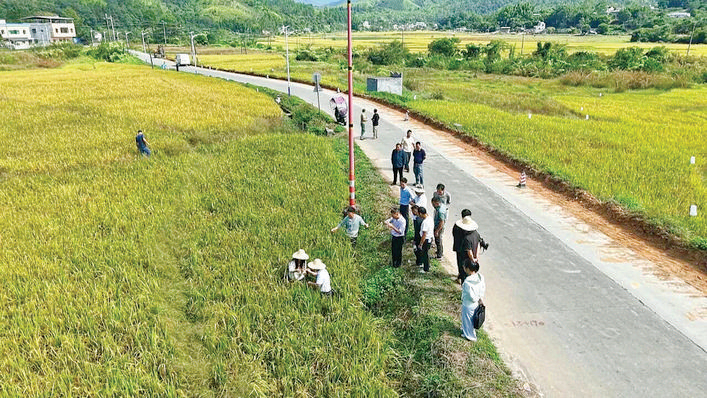 農技人員指導農戶科學布設誘捕器。 惠州日報記者蔡偉健 通訊員蔡金容 李海澄 攝