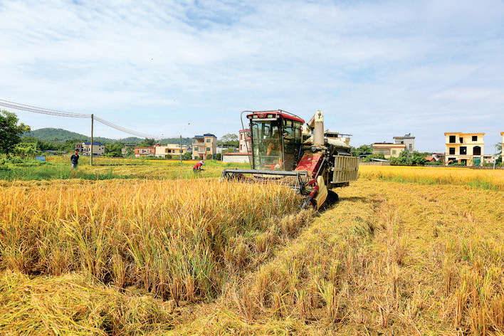 平陵街道黃沙村鐘屋村民小組晚造水稻開割。 惠州日報記者黃宇翔 特約通訊員黃偉光 攝