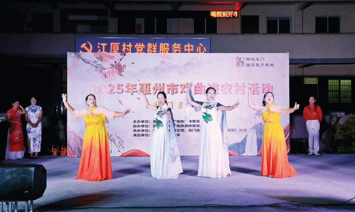 惠州日報訊 (記者黃宇翔 特約通訊員黃偉光)為弘揚中華優秀傳統文化,推動戲曲藝術傳承發展,豐富農村精神文化生活,助力美麗鄉村建設,日前,2025年惠州市戲曲進農村(龍門縣專場)活動走進龍城街道江廈村,為當地村民送上了一場精彩的粵曲文化大餐。