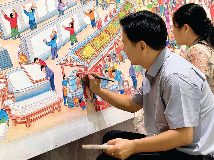 畫家正在創作龍門農民畫;葜萑請笥浾唿S宇翔 攝